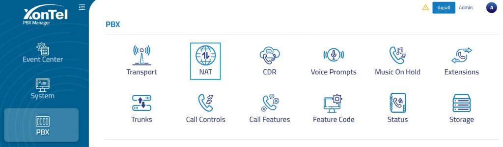 The NAT (Network Address Translation) section in the PBX system is used to ensure proper audio and signaling when your PBX is behind a router or firewall.