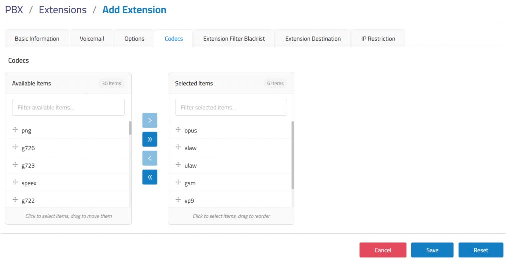 Select the codecs supported by the device. You can prioritize and enable the codecs that best suit your network and call quality requirements.