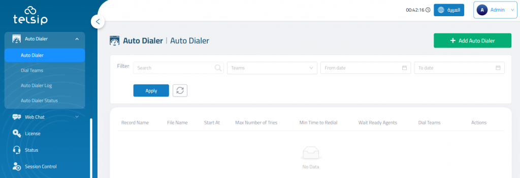 The Auto Dialer module automates outbound calls by scheduling campaigns based on uploaded contact lists (e.g., Excel files). It allows you to define the start time, number of retry attempts, minimum wait time before redialing, and required agent availability. With full control over dial teams and campaign settings, this feature ensures efficient outbound communication while maximizing agent productivity and minimizing manual effort.