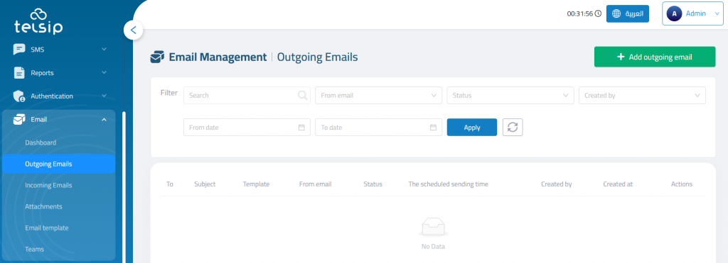 The Outgoing Emails page gives you a detailed log of all emails sent from your system. It’s the place to track communication history, verify delivery, and monitor agent activity across your email queues.