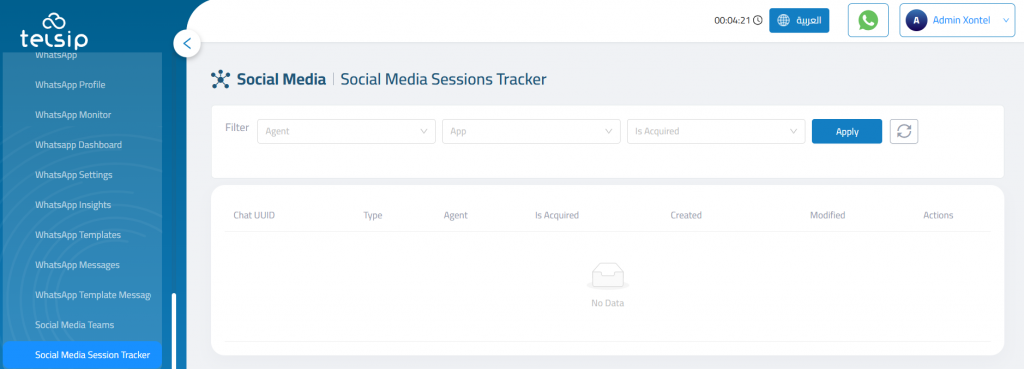 The Social Media Sessions Tracker is a powerful tool within the Social Media module that lets you monitor, filter, and manage ongoing or historical chat sessions across all integrated platforms, such as Facebook Messenger, Instagram, and Twitter.