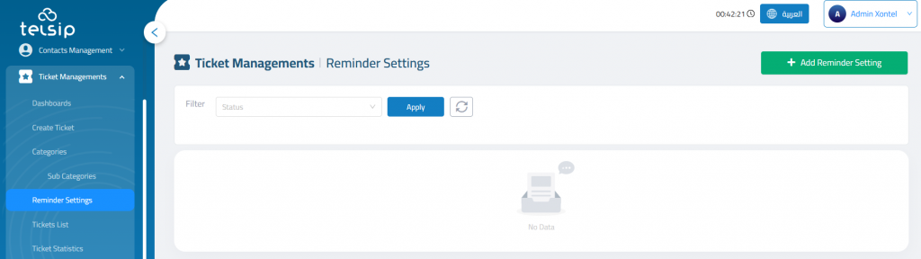The Reminder Settings section within the Ticket Management module allows administrators to automate email reminders for ticket statuses, ensuring timely follow-ups and improved support workflows.