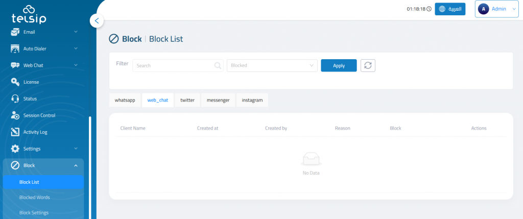The Block List module allows you to manage clients who have been restricted from communicating with your support or messaging system across various channels.