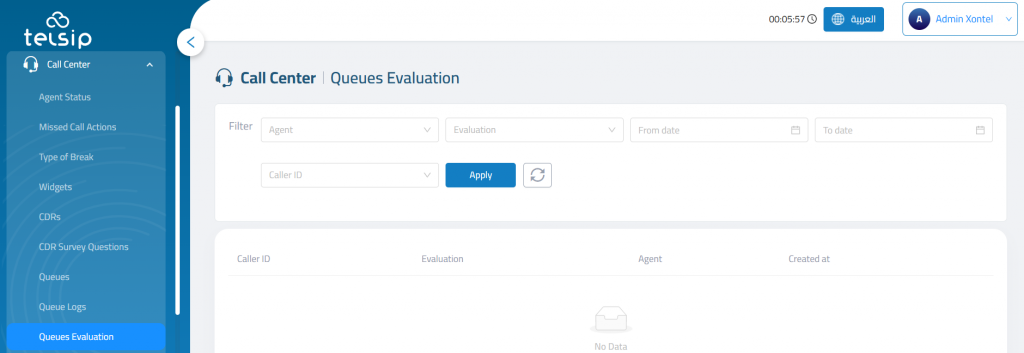 The Queues Evaluation module provides insights into the quality and performance of queue-based interactions within the call center.