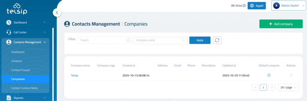 Default Company:Toggle switch to set this company as the system’s default.