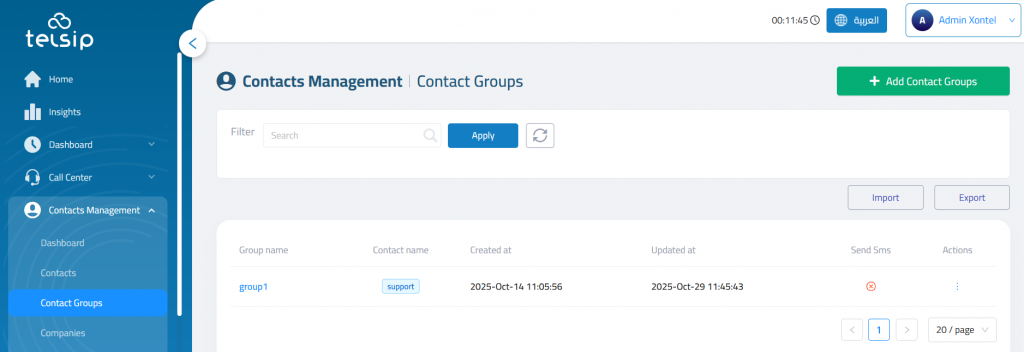 The Contact Groups module allows you to create, manage, and organize contacts into meaningful groups. These groups help with bulk messaging.