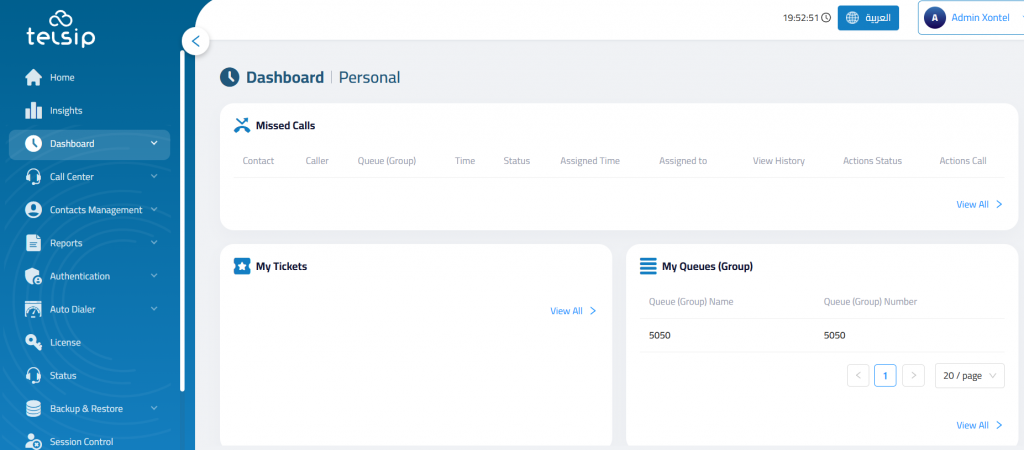 The Personal Dashboard is a dedicated interface designed for individual call center agents or users. It consolidates personalized activity and queue assignments , enabling users to track their performance, responsibilities, and actions efficiently.