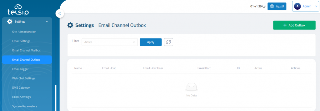 The Email Channel Outbox allows you to manage the outgoing email servers used by your system to send notifications, ticket responses, and other system emails.