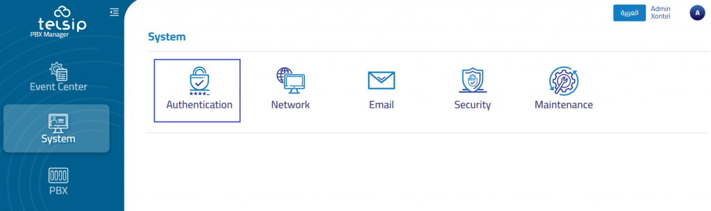 Control access to your PBX system by managing users, groups, and permissions from the Authentication section, ensuring secure and role-based system usage.