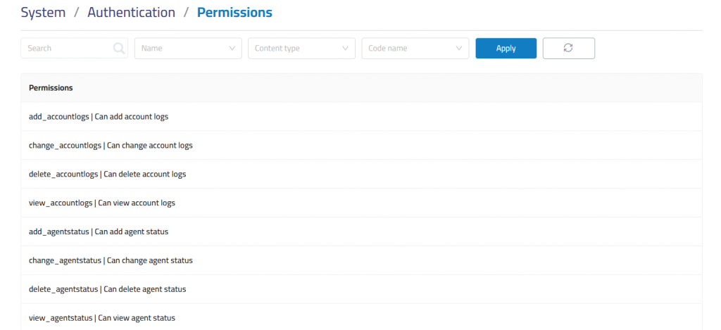 Here, you can find all system permissions. You can search or filter for a specific permission.
