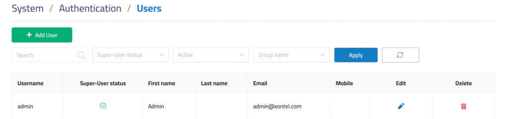 The system includes one default admin account referred to as the Super-User, which holds the highest level of privileges.