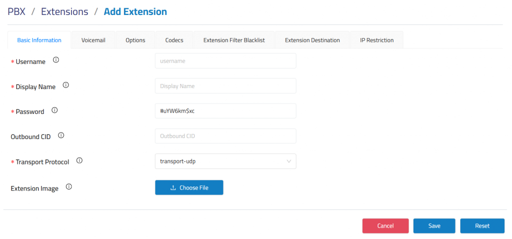 Password: The authentication credential required for the extension to successfully register with the PBX.