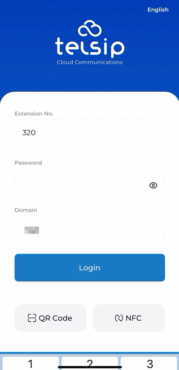 - 🔑 Extension Number & Password: Enter your extension number, password, and domain that you chose during subscription.