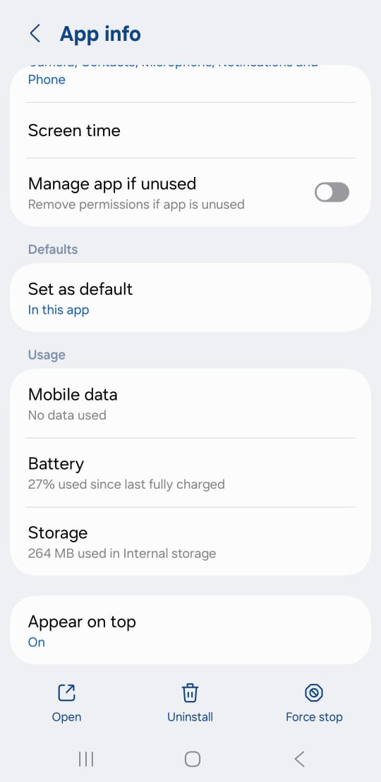 - ๐๏ธ Appear on Top: Turn ON to allow TelSip to display call screens and notifications above other apps.