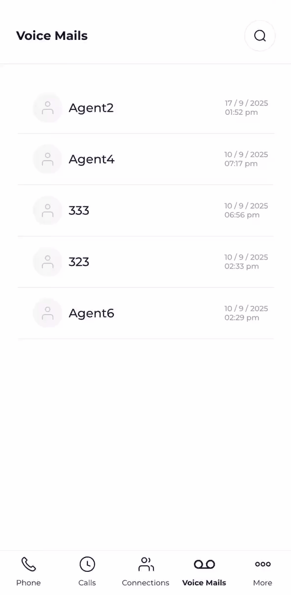 - π Search Voicemails: Quickly find a specific voicemail by searching within your list.