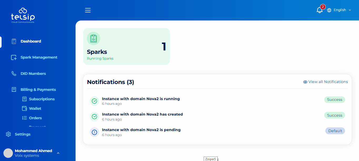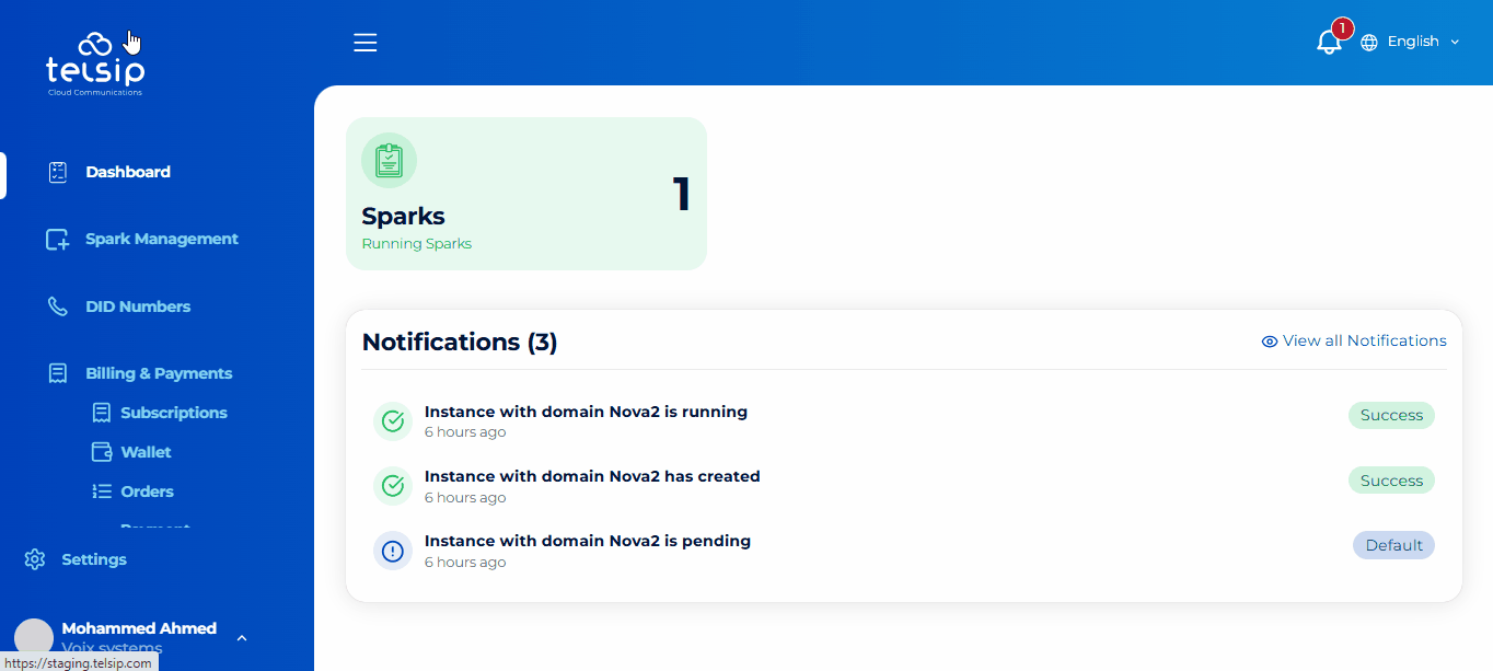 - Notifications Panel: Displays the real-time status of your Sparks (Pending, Created, Running, e.g.).
