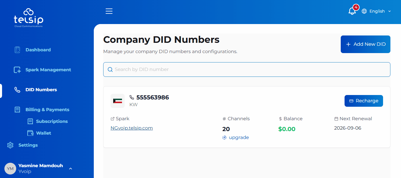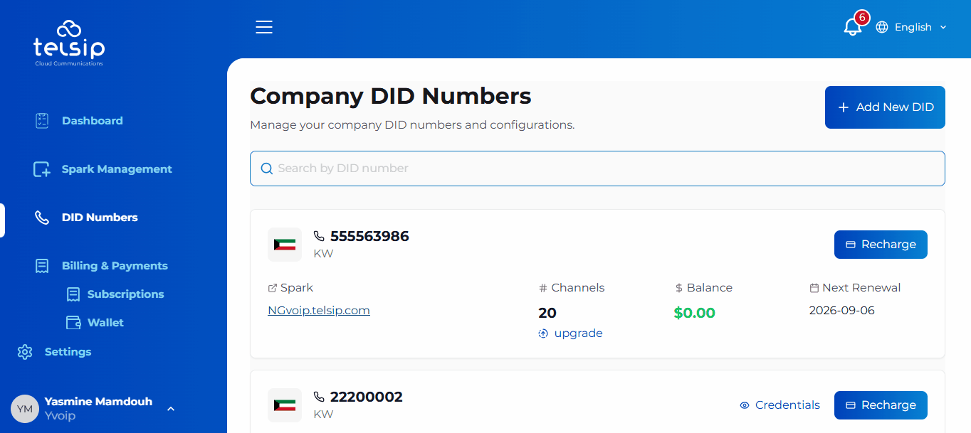 - ➡️ In all cases, both types will always be displayed in the DID Numbers section for easy management.