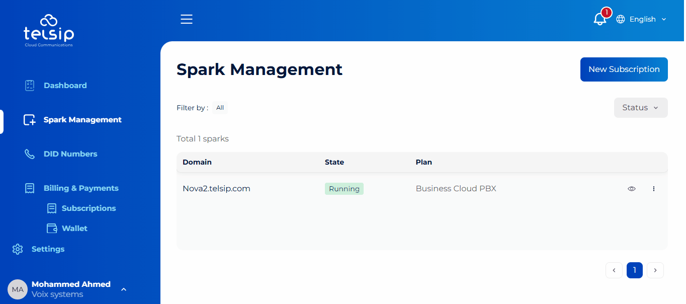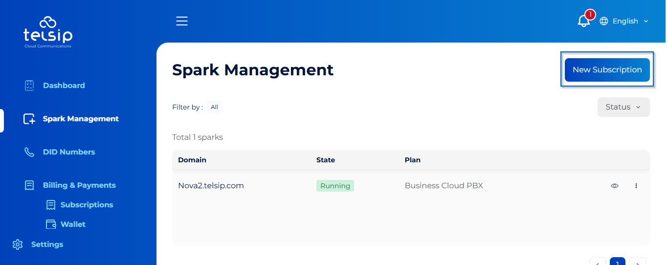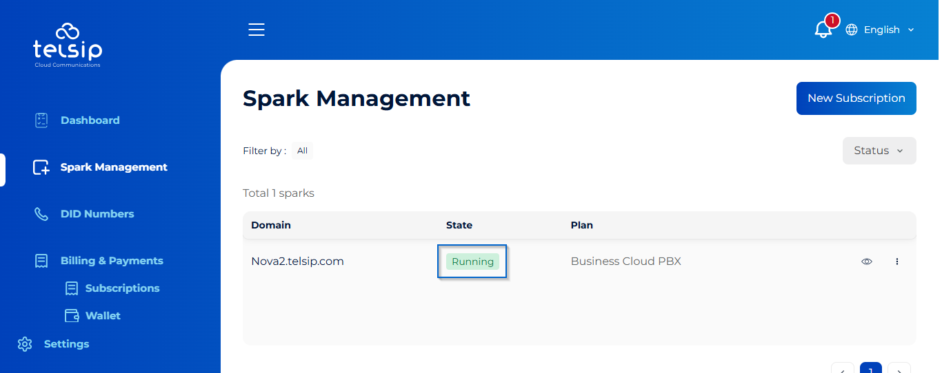 - See whether your Spark is running, pending, stopped, or any other current status.